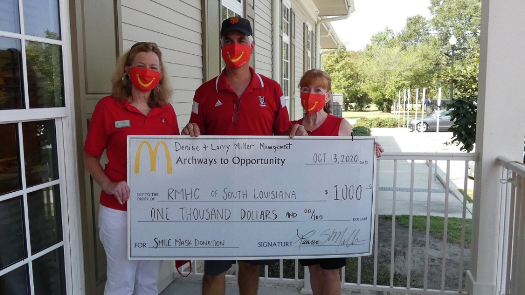 We are all smiles over the $1,000 Ronald McDonald House Charities of South Louisiana received Tuesday from Denise and Larry Miller Management for the McDonalds smile ...
